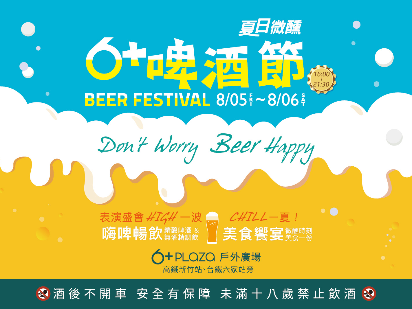 主打 ”Don’t Worry, Beer Happy!” 的「6+啤酒節」,首屆將於2022年8月5日、6日的下午4點到9點半,在暐順6+PLAZA 戶外廣場盛大登場,打造新竹高鐵、台鐵六家站旁最High的夏日微醺派對!